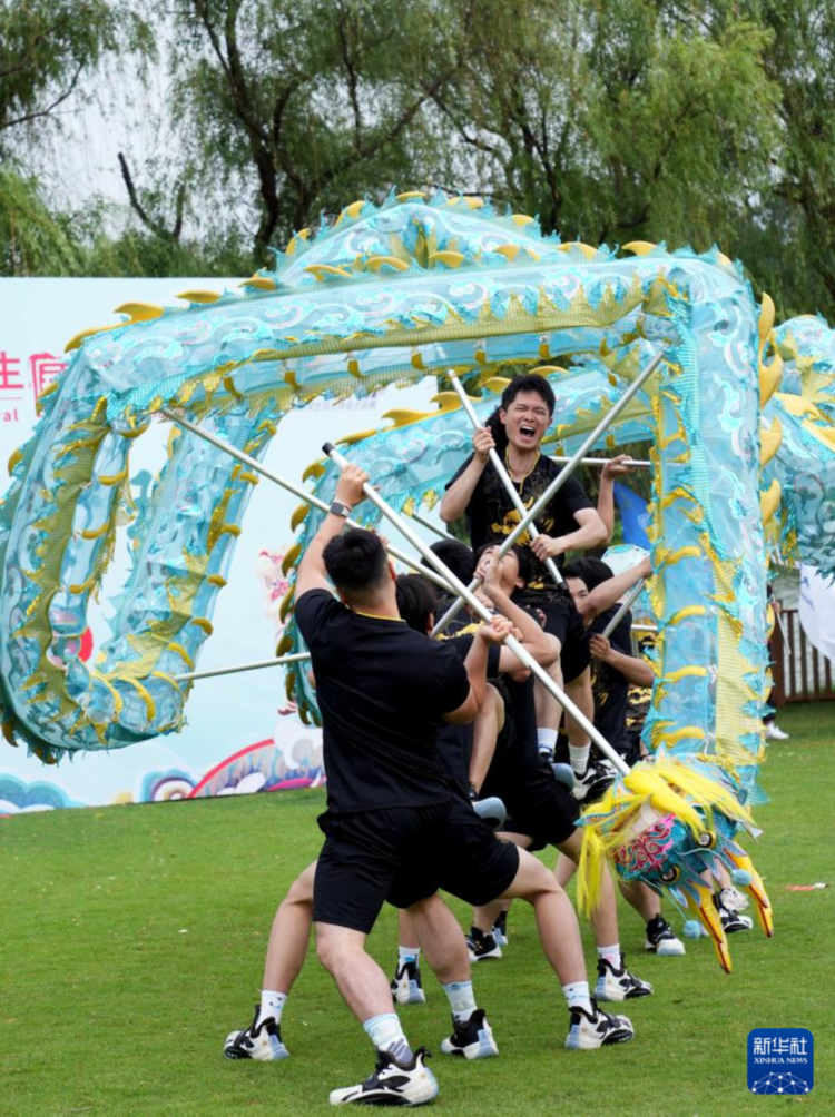 6月10日,参赛选手在龙狮赛初中组的比赛中。