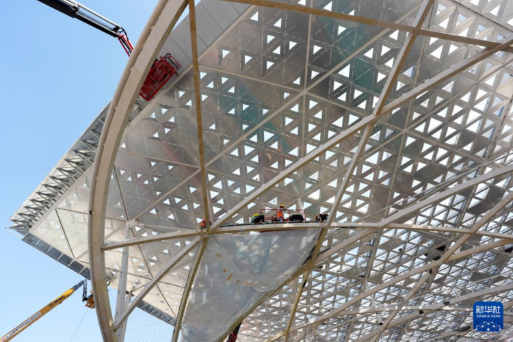 在北京城市副中心站综合交通枢纽工程施工现场,工程主体结构、装饰装修、“京帆”屋盖施工和机电设备安装等正有序推进。为了应对高温天气的影响,建设施工方通过调整户外施工人员作业时间,发放防暑药品、饮品等方式保障户外施工人员的健康安全,确保工程建设稳步推进。