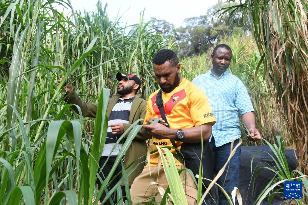 2024年3月28日,在位于福州的福建农林大学,来自卢旺达和巴布亚新几内亚的学生在“国际菌草苑”内查看菌草长势。 新华社记者 林善传 摄