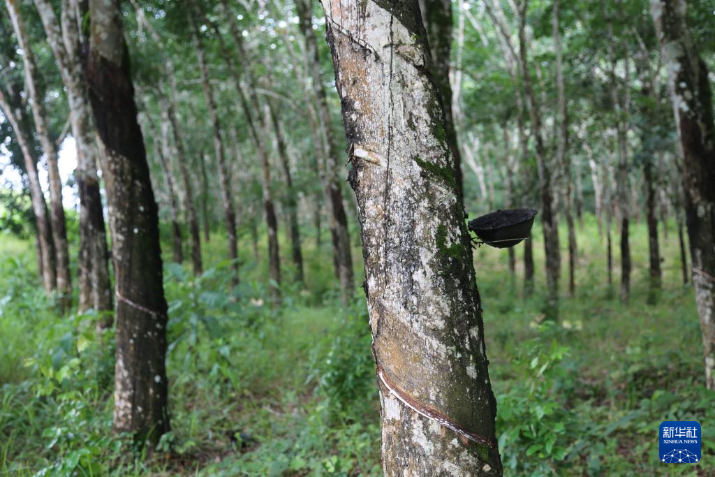 这是2024年6月10日拍摄的位于科特迪瓦南部城镇达布郊区的三叶橡胶树林。 新华社记者 张健 摄