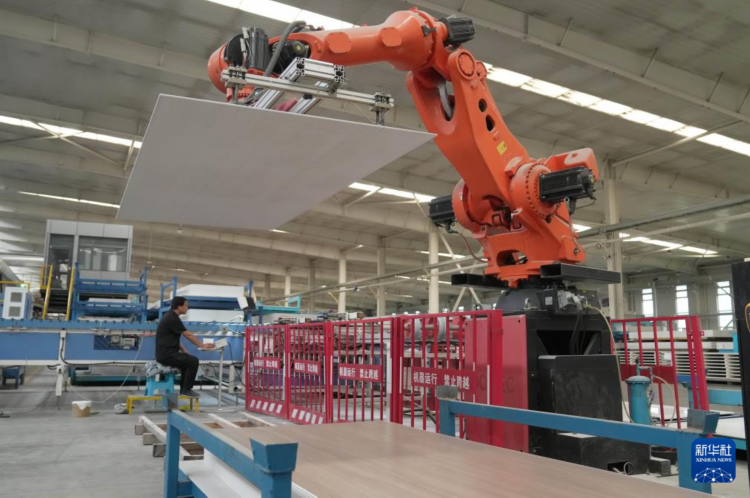 6月13日,工人在卢龙县一家环保型建设材料企业的生产车间工作。