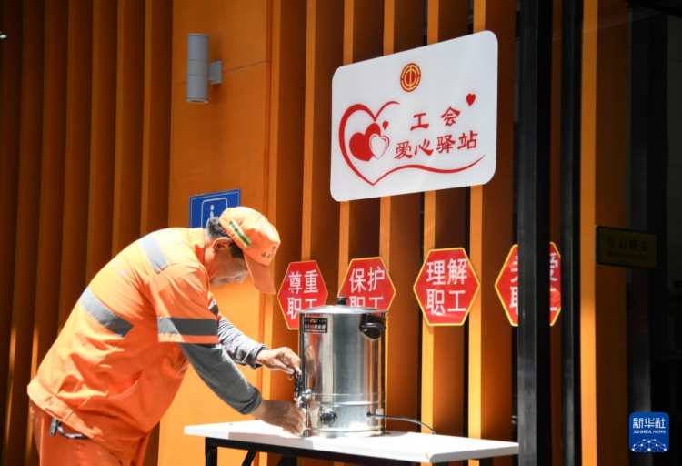 近日,陕西西安迎来高温天气,不少户外工作者坚守岗位默默奉献。为保障户外工作者的身体健康,相关单位与社会各方积极提供多种形式的防暑降温措施,共同为烈日下的坚守者撑起“遮阳伞”。
