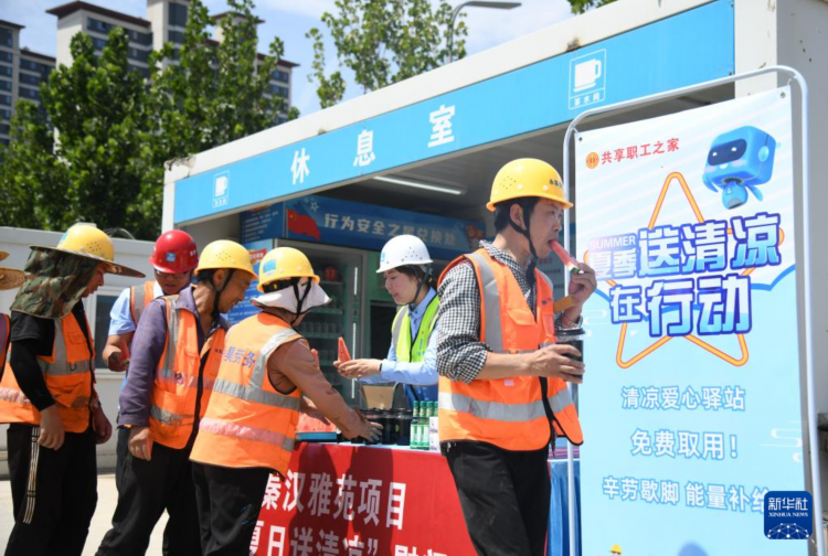 近日,陕西西安迎来高温天气,不少户外工作者坚守岗位默默奉献。为保障户外工作者的身体健康,相关单位与社会各方积极提供多种形式的防暑降温措施,共同为烈日下的坚守者撑起“遮阳伞”。