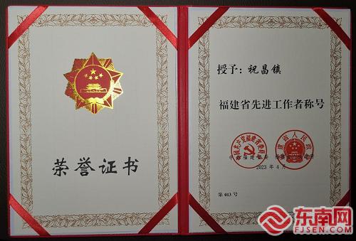 祝昌镇荣获福建省先进工作者称号。闽清公路中心供图