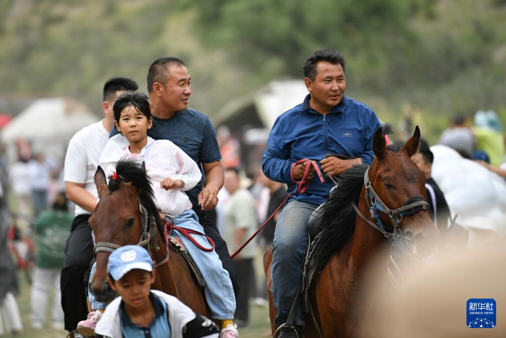 6月15日,人们在“夏牧场·游牧文化旅游节”活动上骑马游玩。