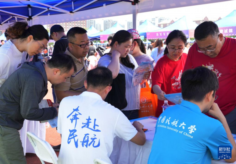6月16日,家长们在咨询会上与高校招生老师交流。
