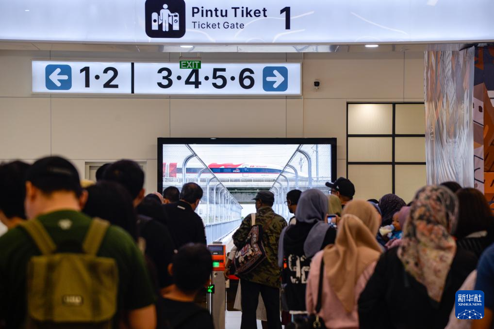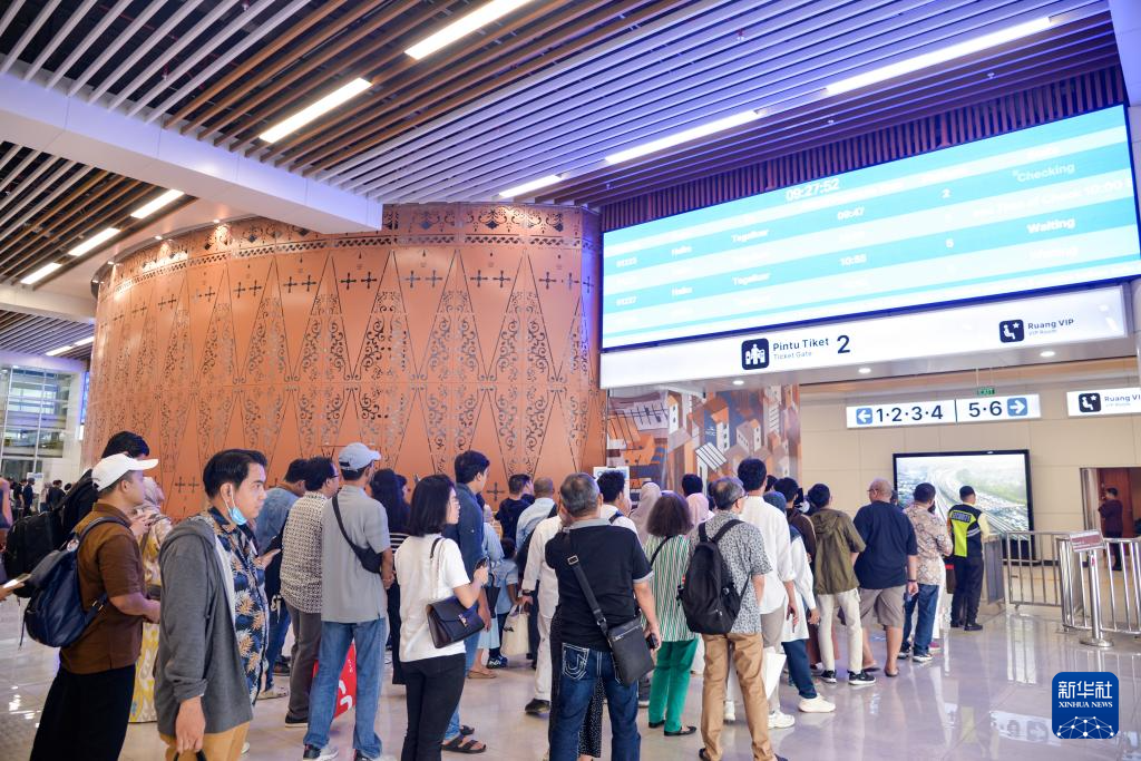 6月17日,在印度尼西亚雅加达哈利姆站候车大厅,乘客排队等候刷票进站。 当日,印尼雅万高铁正式开通运营8个月。根据印尼中国高速铁路有限公司数据,截至6月16日,雅万高铁累计发送旅客约354万人,发送旅客列车9936列。 新华社记者 徐钦 摄