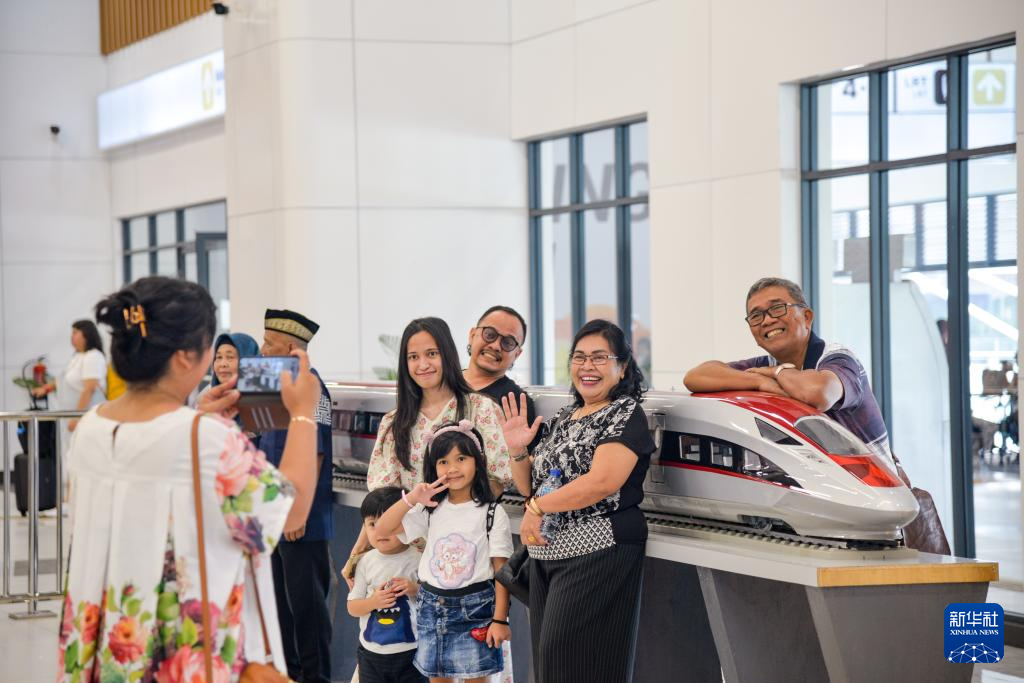 6月17日,在印度尼西亚雅加达哈利姆站候车大厅,乘客在雅万高铁高速动车组司机室装饰内拍照。 当日,印尼雅万高铁正式开通运营8个月。根据印尼中国高速铁路有限公司数据,截至6月16日,雅万高铁累计发送旅客约354万人,发送旅客列车9936列。 新华社记者 徐钦 摄