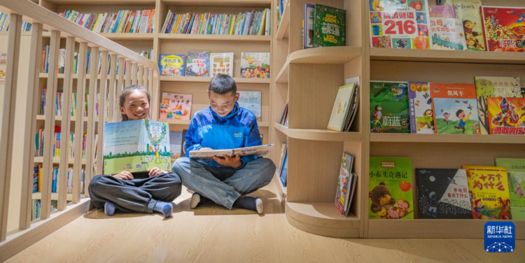 孩子们在“温暖嘉·色尼城市书房”内阅读儿童绘本(6月17日摄)。