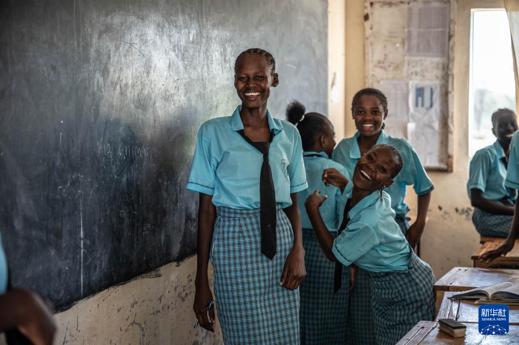 这是6月18日在肯尼亚图尔卡纳郡卡库马难民营毕生希望女子中学内拍摄的学生。