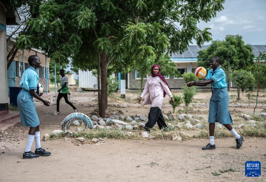 6月18日,在肯尼亚图尔卡纳郡卡库马难民营内,毕生希望女子中学的学生在校园内运动。