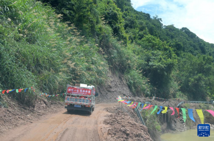 6月20日,运载救援物资的车辆在开往平远县泗水镇。