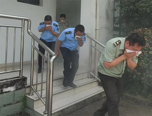消防人员介绍救援设备 来自清流县总医院的医护人员为大家详细讲解了心肺复苏救治要领、外伤包扎等相关急救知识,各部门工作人员在医护人员的指导下开展心肺复苏、外伤包扎实操训练,直至熟练掌握。来自清流县消防救援大队的消防员对消防栓和灭火器等常用灭火器材使用方法进行逐一讲解,并结合高速公路隧道火灾事故和危化品泄露事故处置,向参加人员介绍如何正确使用防毒面具和简易防毒措施。随后,参演人员在宿舍楼模拟突发火灾场景,组织开展疏散逃生演练,消防员对演练过程中存在的问题进行一一点评。