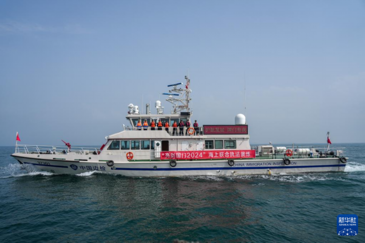 6月23日,新列编的边检执法公务船在进行海上演练。