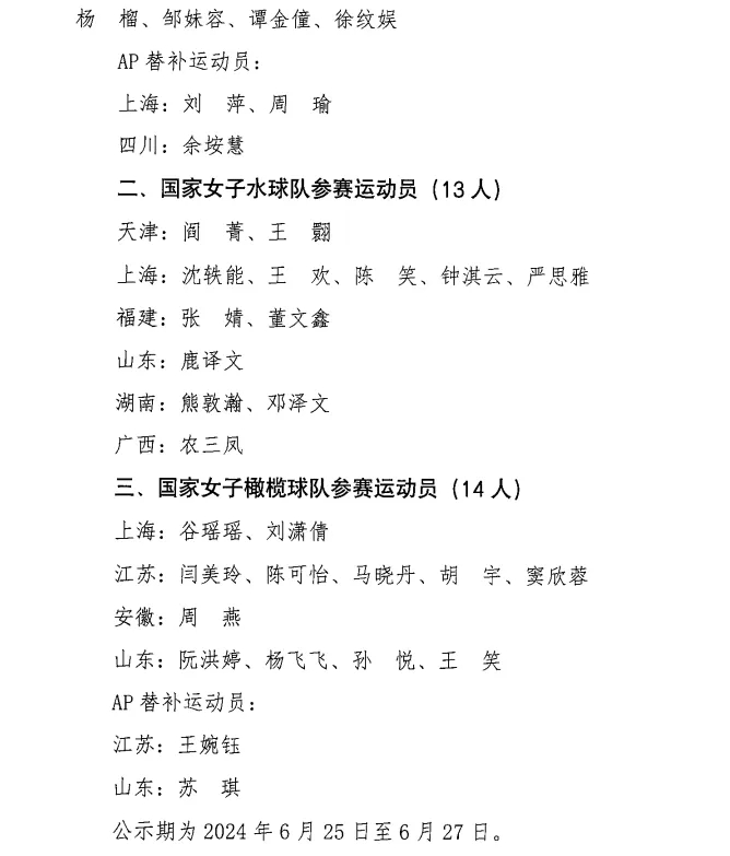 近日,国家奥林匹克体育中心公示了2024年巴黎奥运会曲棍球、水球、橄榄球项目参赛运动员名单,福建运动员张婧、董文鑫入选国家女子水球队。