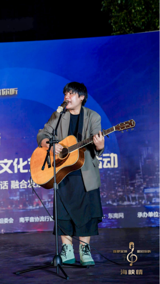 两天的松溪之行,最后的压轴活动是一场音乐晚会。这是他们的舞台,在松溪县文化广场,海峡两岸音乐人轮番上场,用歌声挥洒青春激情,吸引众多观众驻足观看,掌声不断。