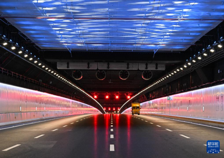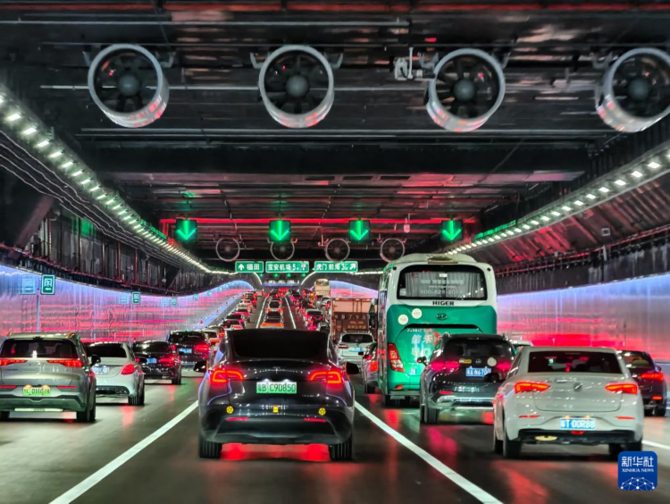 这是开通首日的深中通道海底沉管隧道内的车流(6月30日摄)。