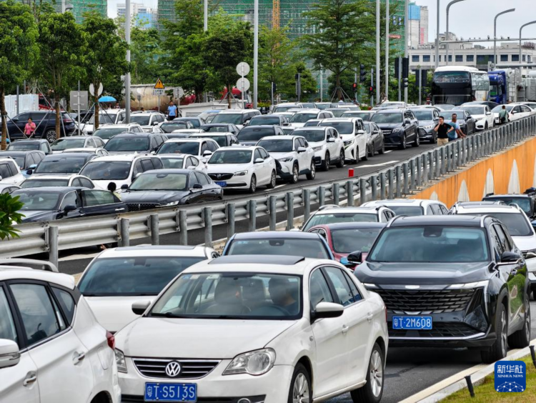 6月30日,大批车辆早早等候在深中通道中山翠亨东收费站外等待通车。
