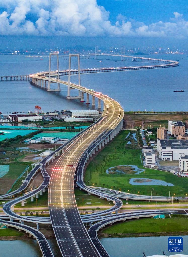6月27日,华灯初上时的深中通道(无人机照片)。
