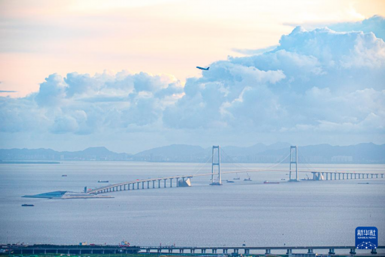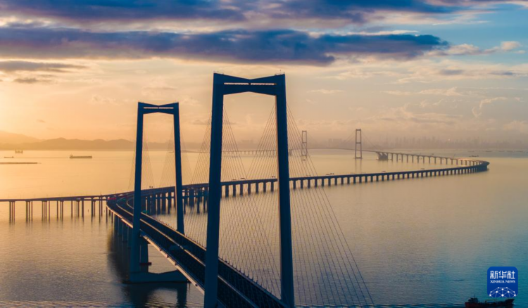 6月27日,沐浴在晨曦中的深中通道(无人机照片)。