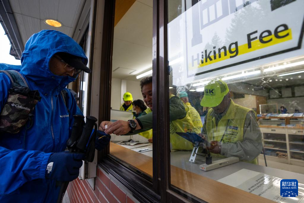 7月1日,在日本山梨县富士山吉田路线五合目登山口购票处,工作人员为游客戴上象征已支付登山通行费的腕带。 7月1日,富士山迎来登山季,四条主要登山路线之一的山梨县境内吉田路线开放。富士山海拔3776米,坐落于日本东部山梨县和静冈县交界处。攀登富士山的路线主要有4条,其中3条位于静冈县;吉田路线位于山梨县,坡度较缓,为多数游客所选择。 从今年登山季开始,游客走吉田登山路线须支付每人2000日元(约合90元人民币)的登山通行费,并且只能在规定时段内登山,在登山人数达到上限后将无法登山。此外,山梨县在位于半山腰的五合目设置了登山大门,每天登山者达到4000人上限后大门将关闭,并且每天下午4时至次日凌晨3时期间,除非提前预订了山间小屋过夜,否则游客不得进入吉田路线。 新华社记者 张笑宇 摄 |