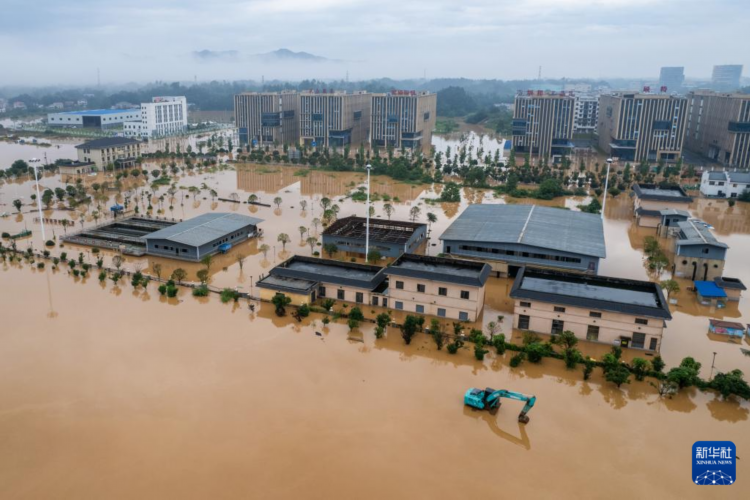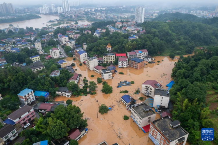 这是7月1日在平江县城区拍摄的被淹现场(无人机照片)。