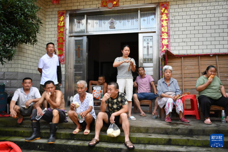 7月2日,生活物资抵达后,辰溪县辰阳镇陆家湾村村民在吃中饭。