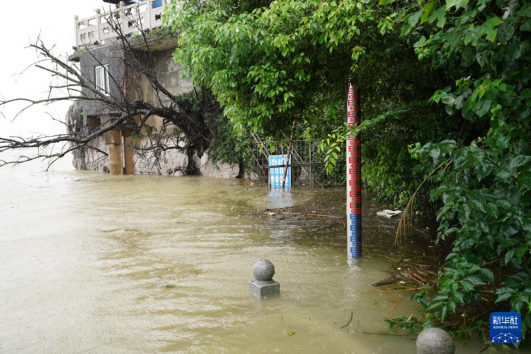 这是位于江西湖口县鄱阳湖与长江交汇口处的水文监测站,水漫上了监测步道(7月2日摄)。