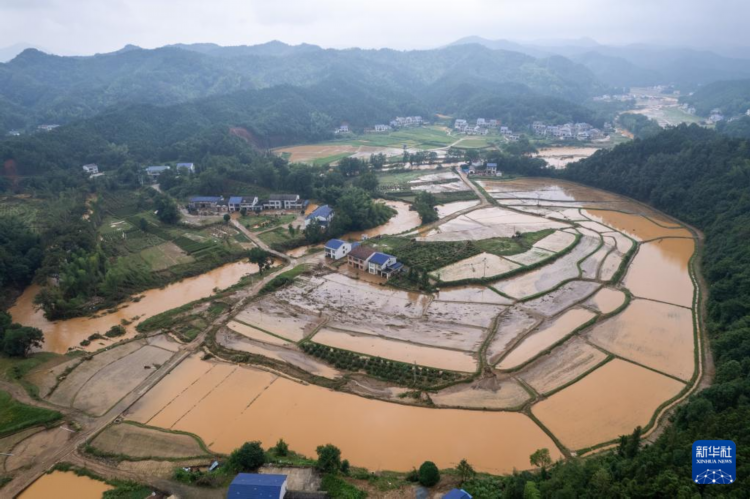 这是7月2日在平江县三市镇淡江村拍摄的受灾现场(无人机照片)。