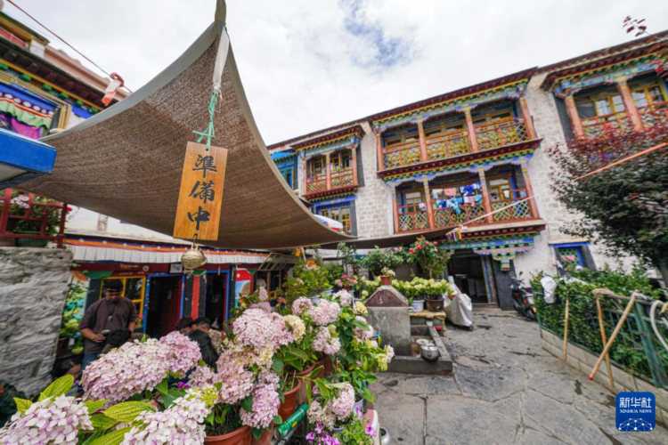 位于拉萨老城区贡桑孜大院一角的咖啡店(7月5日摄)。