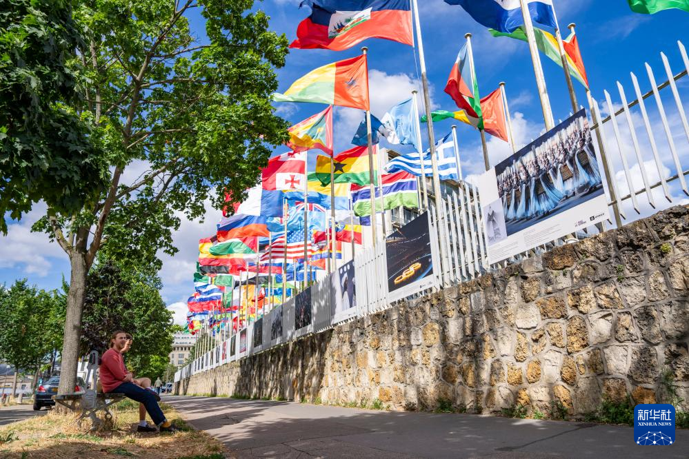 7月6日,参观者观看联合国教科文组织展出的北京奥运会开幕式照片。 随着2024年巴黎奥运会开幕临近,位于巴黎市中心的杜乐丽花园、货币博物馆、联合国教科文组织等地举办了多个奥运主题展览,介绍奥林匹克历史和文化。 新华社记者 许畅 摄