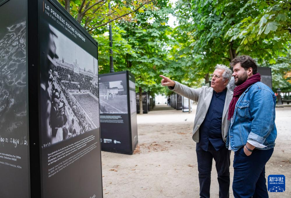 7月3日,两名参观者观看杜乐丽花园展出的1924年巴黎奥运会照片。 随着2024年巴黎奥运会开幕临近,位于巴黎市中心的杜乐丽花园、货币博物馆、联合国教科文组织等地举办了多个奥运主题展览,介绍奥林匹克历史和文化。 新华社记者 孙非 摄