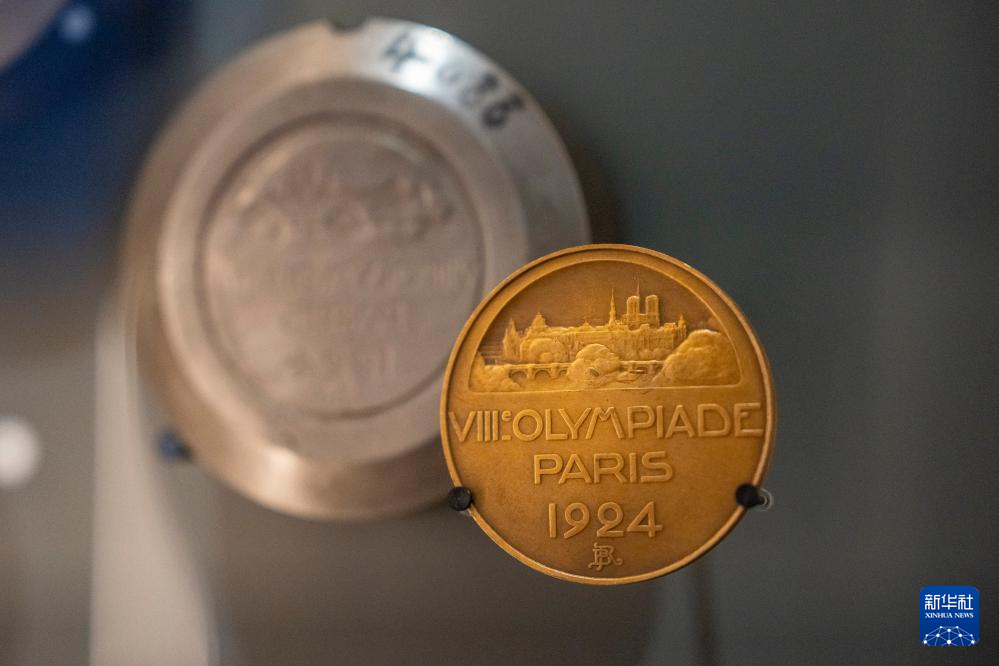 这是在巴黎货币博物馆的奥运奖牌展里展出的1924年巴黎奥运会奖牌(7月6日摄)。