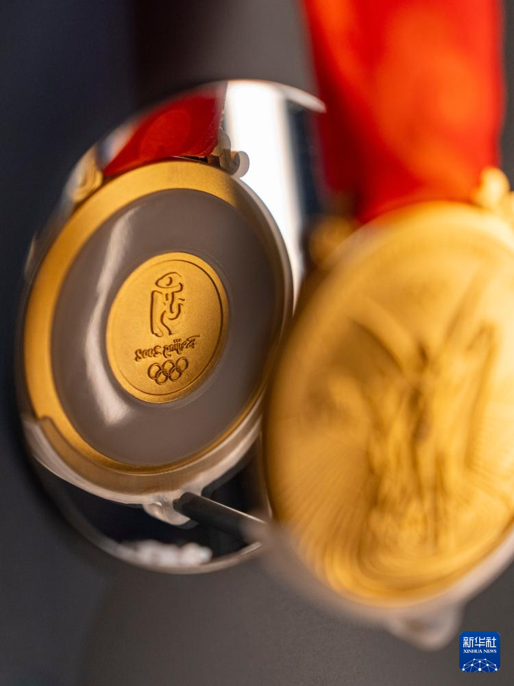 这是在巴黎货币博物馆的奥运奖牌展里展出的2008年北京奥运会奖牌(7月6日摄)。