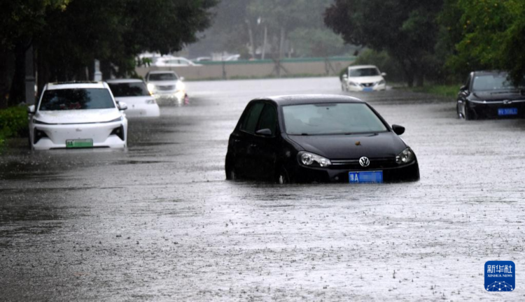 7月8日,在郑州东四环,车辆在水中抛锚。
