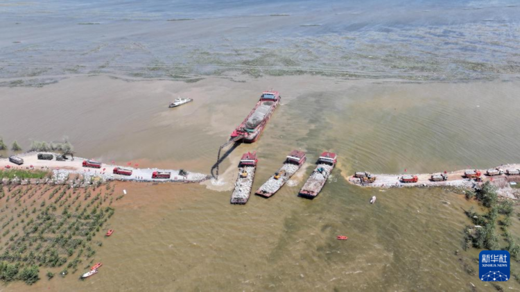 新华全媒+·聚焦防汛抗洪丨剩余45.5米!湖南华容团洲垸洞庭湖大堤堵口进入倒计时