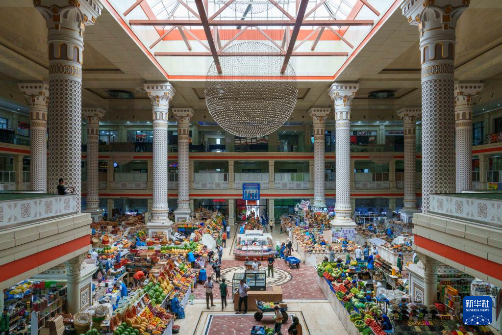 各色的果蔬、多彩的香料、琳琅的商品,共同绘就了塔吉克斯坦首都杜尚别大巴扎这一幅彩色画卷。