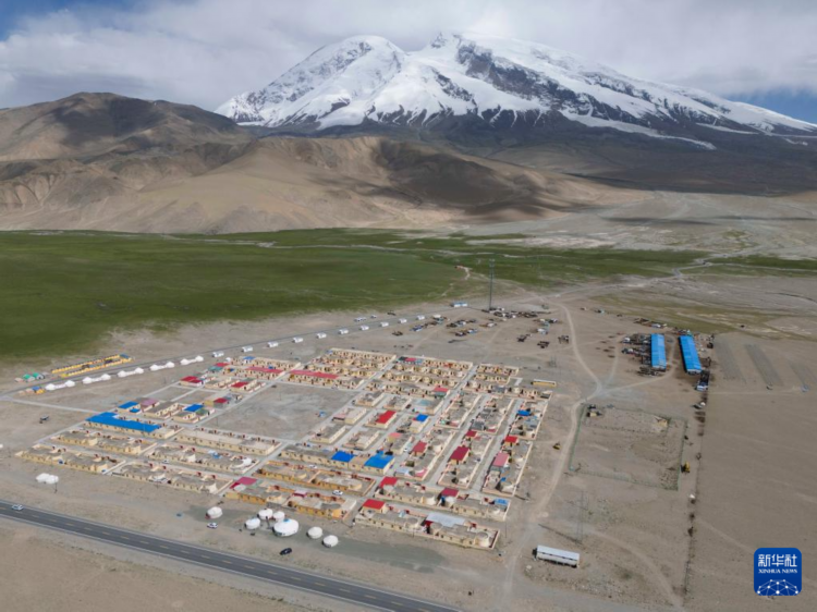 塔西巴伊家住新疆慕士塔格峰脚下的阿克陶县布伦口乡苏巴什村三小队(7月2日摄,无人机照片)。