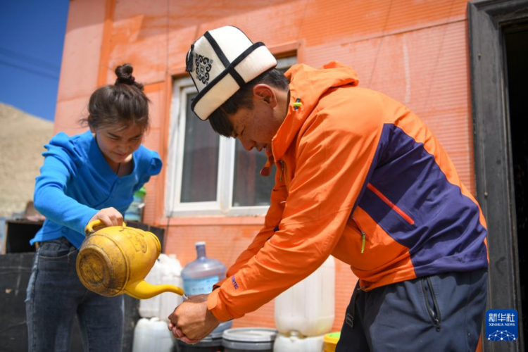 7月5日,塔西巴伊下山后回到家,妹妹为其倒水洗手。