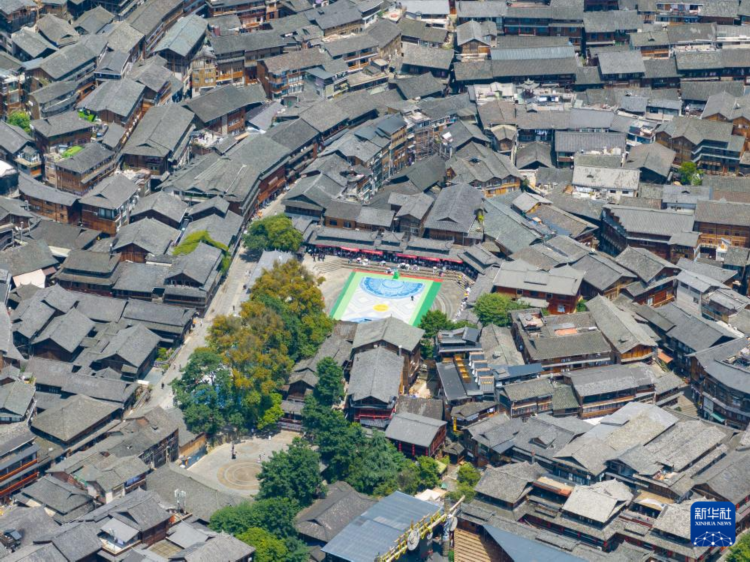 这是7月9日拍摄的西江千户苗寨内的一处篮球场(无人机照片)。