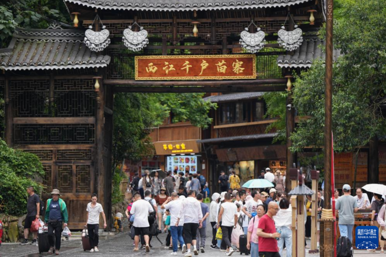 当日,位于贵州省雷山县的世界最大苗寨——西江千户苗寨迎来暑期旅游高峰,据景区统计,当日接待游客人数已达23500余人次。