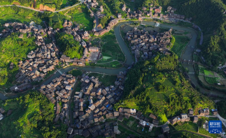 这是广西柳州市三江侗族自治县林溪镇平岩村全貌(无人机照片,7月7日摄)。
