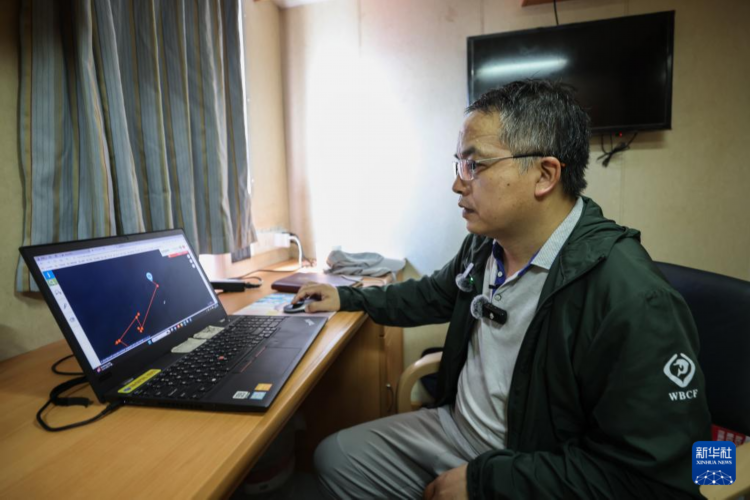7月7日,中国科学院深海科学与工程研究所研究员李松海在查看“海棠”的信标数据。新华社记者 张丽芸 摄