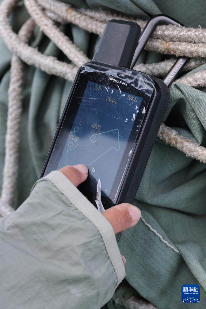 7月7日,在海南岛东部海域,考察团队成员在查看GPS位点信息。新华社记者 张丽芸 摄