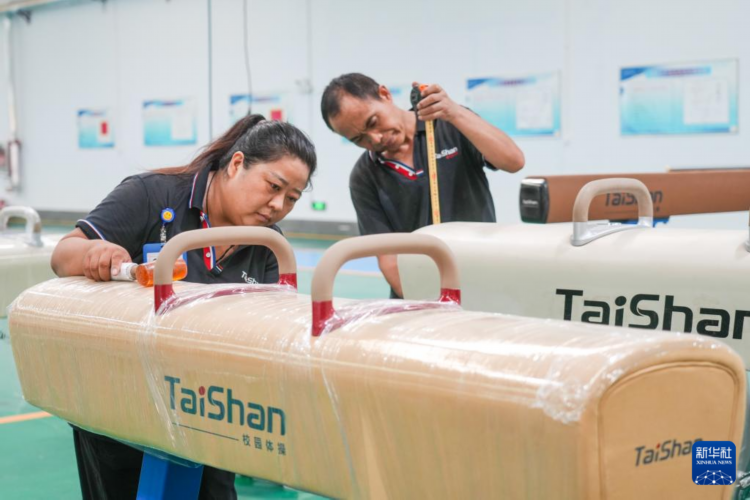 巴黎奥运会临近,“奥运经济”持续升温。位于山东乐陵经济开发区的泰山体育产业集团生产繁忙。泰山体育将为本届奥运会的摔跤、自行车、跆拳道、体操、田径等比赛提供器材,并为中国国家队训练基地提供赛前训练和室内健身器材。