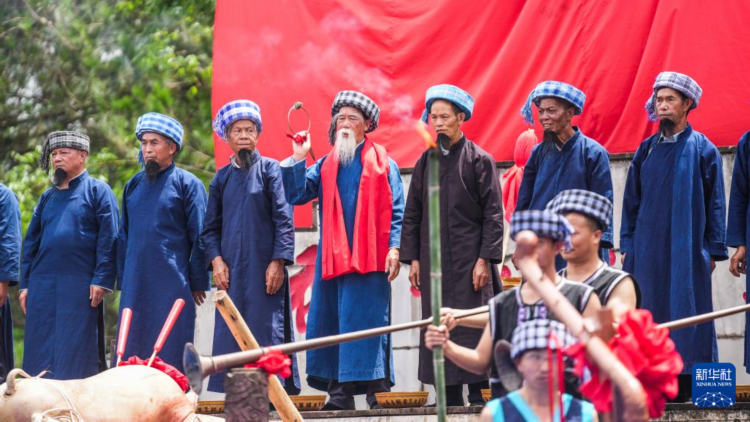 当日是农历六月初六,贵州省六盘水市六枝特区与周边地区的布依族群众相聚月亮河畔,欢度传统民族节日“六月六”。