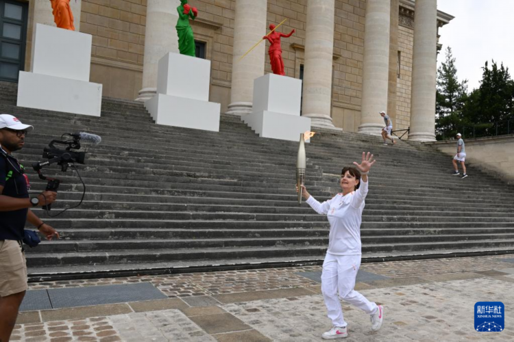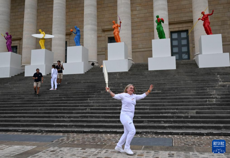 7月14日,在法国国民议会所在地——波旁宫,火炬手瓦莱丽·弗雷奥手持火炬传递。