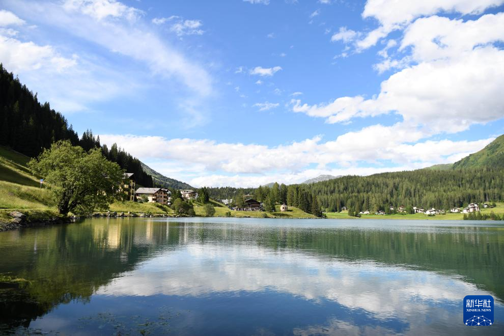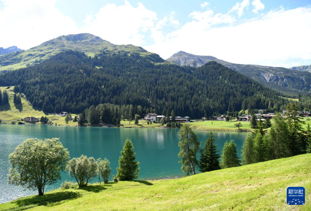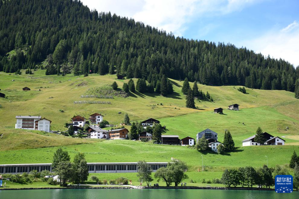 这是7月13日拍摄的瑞士达沃斯山上的湖。 夏天的瑞士达沃斯小镇,草木繁茂,绿意盎然。远山、湖水和民居交织成一幅幅迷人画卷。 新华社记者 连漪 摄