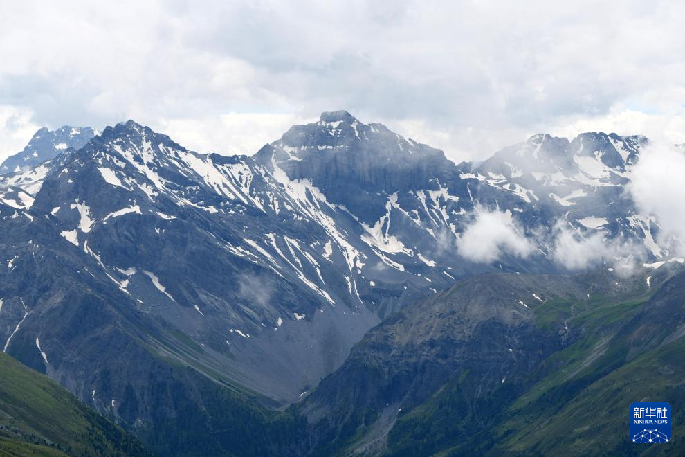 这是7月13日在瑞士达沃斯拍摄的山景。 夏天的瑞士达沃斯小镇,草木繁茂,绿意盎然。远山、湖水和民居交织成一幅幅迷人画卷。 新华社记者 连漪 摄