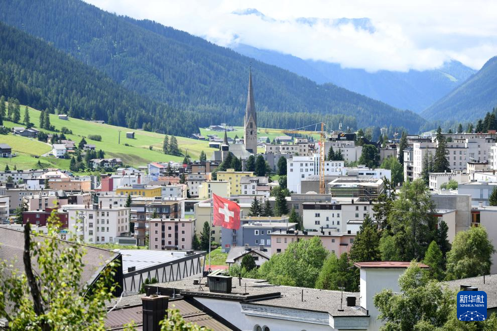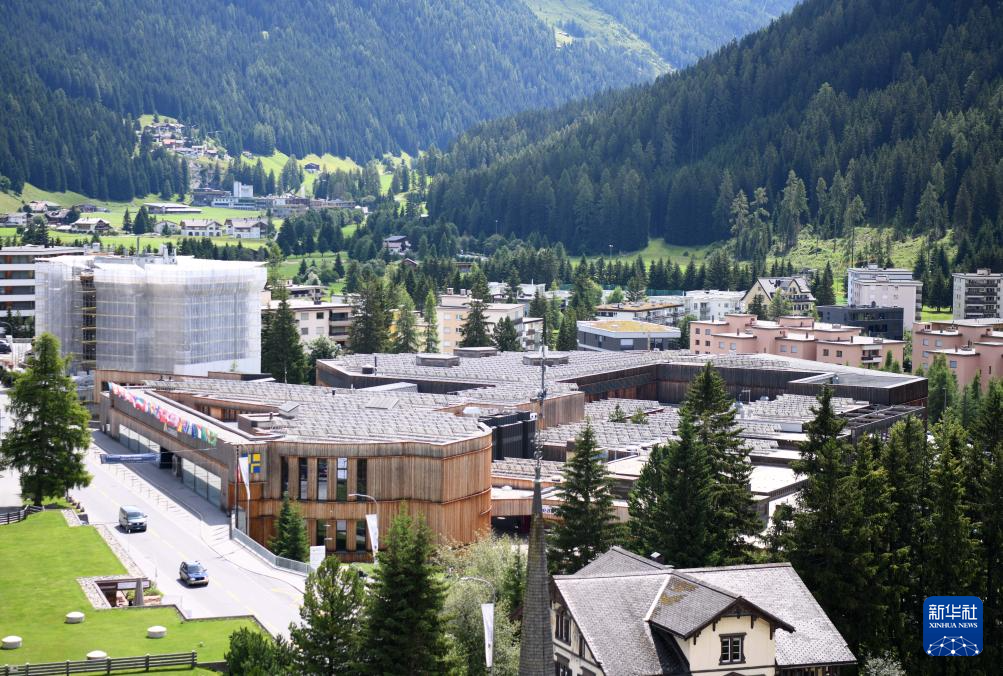 这是7月13日在瑞士达沃斯拍摄的达沃斯会议中心。 夏天的瑞士达沃斯小镇,草木繁茂,绿意盎然。远山、湖水和民居交织成一幅幅迷人画卷。 新华社记者 连漪 摄